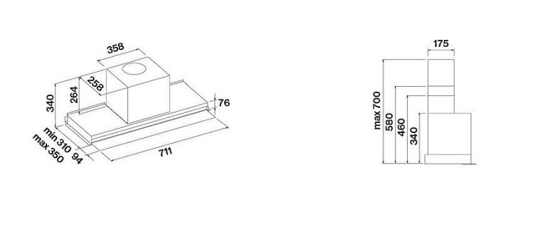 | Функции | Таймер. Боковые звукопоглощающие панели для понижения шума. Увеличенная всасывающая камера. Запатентованная антиконденсационная система No-Drop. Поворотный стеклянный козырек из закаленного стекла со встроенным управлением. Защитные клапаны для края настенного шкафчика. Динамический свет (2700K – 5600K). Освещение с регулируемой яркостью. Сливной коллектор для жидкости |